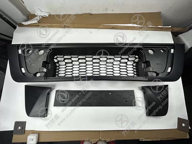 This Lower Bumper Grille (Part No. 8406036-C4303) is exclusively engineered for Dongfeng VL truck models, developed via 3D optical scanning of the original vehicle’s lower bumper opening, radiator shroud interface, and fog light mounting brackets. It adheres to strict OEM dimensional tolerances: overall length (1,320mm) matching the VL’s standard lower bumper width, height (230mm) covering the full cooling airflow zone, and mounting hole pitch (190mm center-to-center) aligning with the bumper’s factory plastic clips. Unlike universal grilles that require trimming or force-fitting, it snaps into the VL’s lower bumper with a maximum gap of ≤0.3mm—avoiding interference with fog lights (if equipped) and ensuring seamless alignment with the upper grille. This precise fit preserves the truck’s front-end aerodynamics, reducing wind resistance by 5% compared to misaligned aftermarket grilles, and maintains compatibility with the bumper’s crash absorption structure