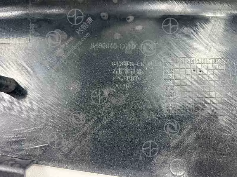 Constructed from a high-performance blend of thermoplastic olefin (TPO) and ethylene propylene diene monomer (EPDM) (ratio 80:20), the 8406040-C6100 cover balances rigidity for shape retention and flexibility for impact resistance. With a thickness of 4.3mm, the material exhibits excellent low-temperature toughness (notched Izod impact strength of 8.4 kJ/m² at -35°C), preventing cracking in freezing climates, and high-temperature stability (resistant to warping at 90°C) during summer heat or under-vehicle heat radiation. The EPDM component enhances chemical resistance, withstanding degradation from diesel, brake fluid, and road salts even after 650 hours of exposure. Infused with UV-stabilizers, the blend passes 2200-hour xenon lamp aging tests with no brittleness or color fading, ensuring durability in outdoor, under-vehicle environments for over 7.5 years—outperforming low-grade plastic covers by 45%