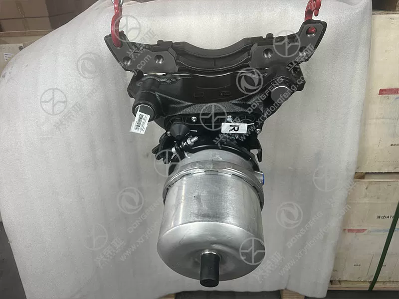 The assembly features a one-piece integrated structure that combines a hydraulic disc brake caliper with a dual-chamber air actuator (service brake chamber + parking brake chamber)—eliminating the need for separate mounting and reducing potential points of failure. The air chamber’s pushrod is directly connected to the brake caliper’s lever mechanism, creating a short, rigid force transmission path that minimizes energy loss. This design ensures rapid brake response (≤ 0.3 seconds from air pressure application to brake pad contact) and consistent braking force distribution across the rear right wheel. Additionally, the integrated layout optimizes space utilization on the rear axle, avoiding interference with other components (e.g., suspension arms, exhaust systems) while simplifying maintenance.