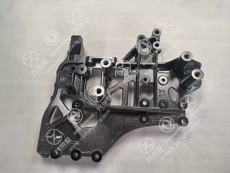 This left front lower guard bracket assembly OE 2809217-H12B0 is manufactured strictly to Dongfeng GX&KX original design specifications, forged from high-grade ductile cast iron (QT450-10) that delivers exceptional structural rigidity and impact resistance—critical for absorbing front-end collision forces. The product features an optimized ribbed lattice design that reinforces load distribution while reducing overall weight, ensuring maximum strength without unnecessary bulk. The integrated mounting bosses and threaded holes are precisely machined to match the truck’s frame and lower guard, providing secure, vibration-resistant attachment points. It adopts a 1:1 original dimensional design, with precise mounting hole tolerances that perfectly align with the truck’s frame, ensuring a tight, stable fit and uniform load transfer. This robust design combines strength and lightweight efficiency, making it the ideal OEM replacement for Dongfeng GX&KX heavy-duty trucks.