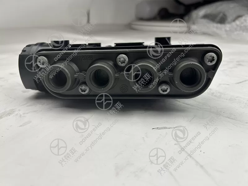 The assembly features an integrated multi-way solenoid valve design (3-way or 4-way, based on Dongfeng GX ECAS configuration) optimized for precise air pressure control in the vehicle’s suspension airbags. It combines inlet, exhaust, and working ports into a single compact housing—eliminating the need for separate valves and reducing air line complexity. The valve core is driven by a high-response electromagnetic coil (12V/24V DC, matching GX’s electrical system) that switches between "fill," "hold," and "exhaust" modes in ≤ 50ms. Additionally, the housing incorporates internal pressure damping channels to reduce air flow turbulence, ensuring stable pressure regulation even during rapid suspension adjustments (e.g., load changes or road surface variations)