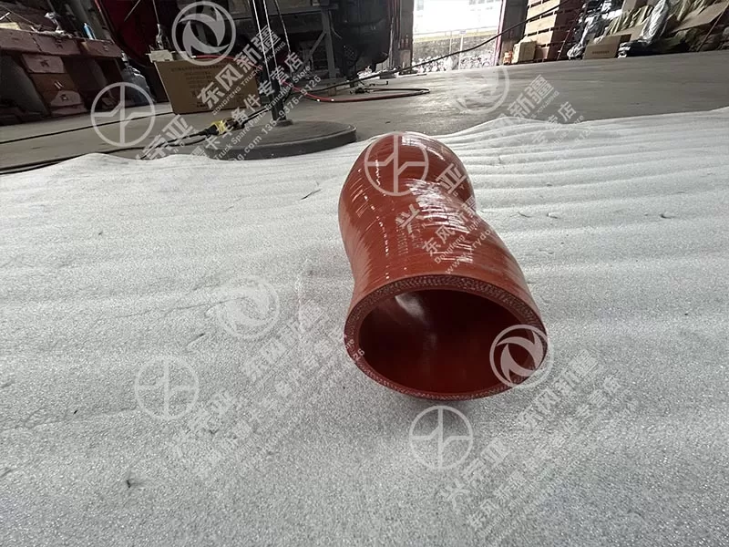 The Engine Inlet Exhaust Hose (Part No.: 1119124-T5XF01Y) is exclusively engineered to match the original specifications of Dongfeng Xinjiang heavy-duty truck engines, including the popular X7 and X5 series equipped with Cummins X12 or Yuchai YC6K power units. Its key parameters—76mm inner diameter, 10mm wall thickness, 1200mm total length, and 90° flexible elbow—align precisely with the factory inlet manifold (OE part 1119120-T5XF01Y) and turbocharger outlet flange. The hose’s end fittings (integrated stainless steel clamps with 4 M6 mounting holes) fit seamlessly with the original gasket system, eliminating air leakage risks. As an OE-matching component, it requires no cutting or adapter modifications, directly replacing the original hose while preserving the engine’s calibrated air-fuel ratio and exhaust gas flow path, critical for emission compliance and performance
