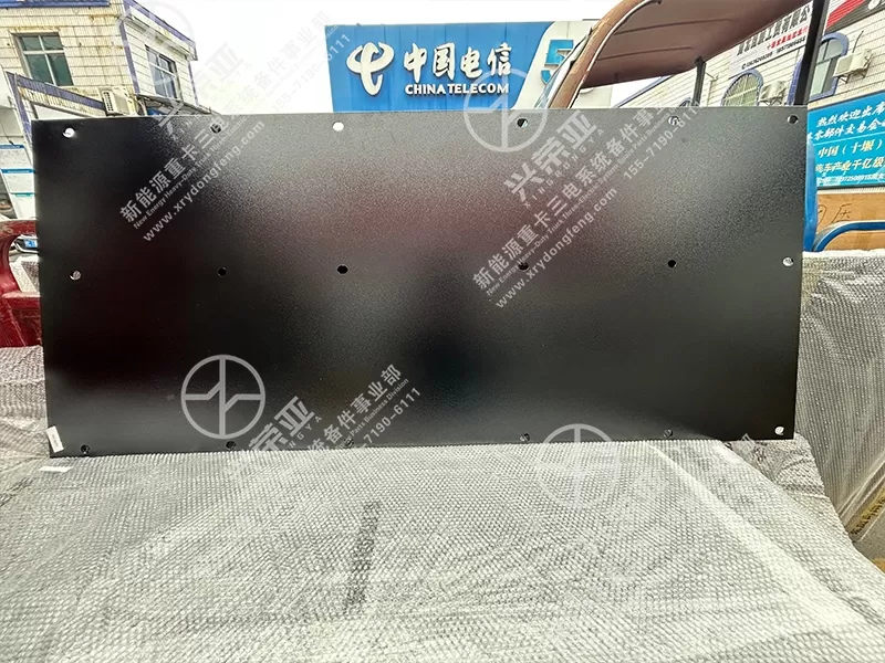 This right side panel OE 2120318-TE821 is manufactured strictly to Dongfeng New Energy original design specifications, using high-strength steel that offers exceptional rigidity, impact resistance and anti-deformation performance. The surface is coated with a thick black anti-corrosion layer that resists oxidation, road salt, moisture and dust erosion, ensuring long-term structural stability and appearance integrity. The internal side features pre-installed shock-absorbing and anti-slip strips, which reduce vibration transmission between the panel and the battery pack, preventing wear and noise. It adopts a 1:1 original size and contour design, with precisely positioned mounting holes that perfectly match the truck’s chassis and battery cover fixing points, ensuring a tight, gap-free fit and stable fixation. The reinforced edge structure effectively absorbs impact and vibration from bumpy roads, firmly protecting the battery pack and preventing deformation or damage. It is specially engineered for heavy-duty new energy truck operation with strong durability and reliability.
